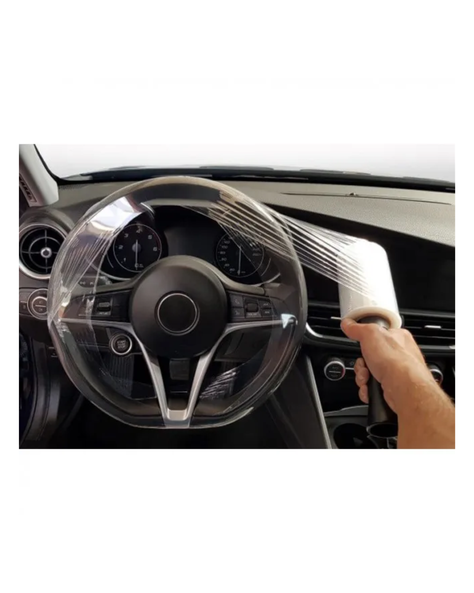 Filme Protetor de Volante, resistente à água, solventes, pó, tinta, etc. Suas propriedades e seu fácil manuseio garantem seu uso em inúmeras atividades. Para que serve: Utilizado para proteção volante/câmbio e painel; Evita sujeira de graxa e óleo das mãos dos mecânicos.